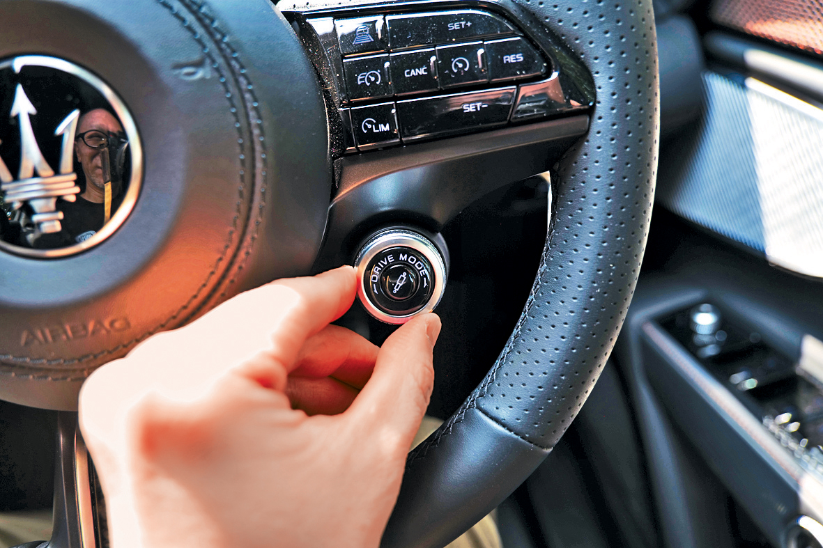 Folgore原车提供4个驾驶模式选择,包括GT、Sport、Max Range及Off-road,标准空气悬挂连电子吸震筒,可自动调节车身高低,以及随时手动切换避震软硬。軚盘后方+/-拨片可控制3段煞车能量回收拖力。GT模式一般市区行驶有 电动车宁静舒服优点,车子提供一股特别声响,可令驾驶感更充实。Folgore加速力非常充沛,全数820Nm扭力是顺畅循序渐进释放,令人感到强劲之余又不会太过压迫难受。由于车重(2,480kg)相比Trofeo汽油版重了约400kg,入弯一刻你会感到它的重量惯性和车身倾侧,幸好主控空气悬挂有效令车身保持稳定,而且可充份吸收路面凹凸起伏,前后马达四驱有效抓实路面驰骋,安全感十足。