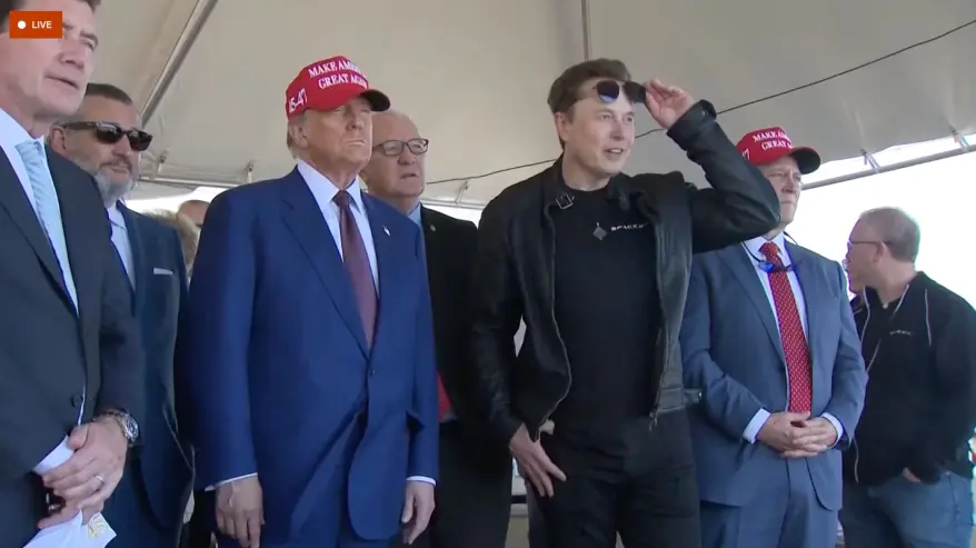 ▲当地时间11月19日,美国太空探索技术公司(SpaceX)“星舰”超重型火箭进行第六次发射,特朗普和SpaceX首席执行官马斯克现身发射现场。图源:外媒