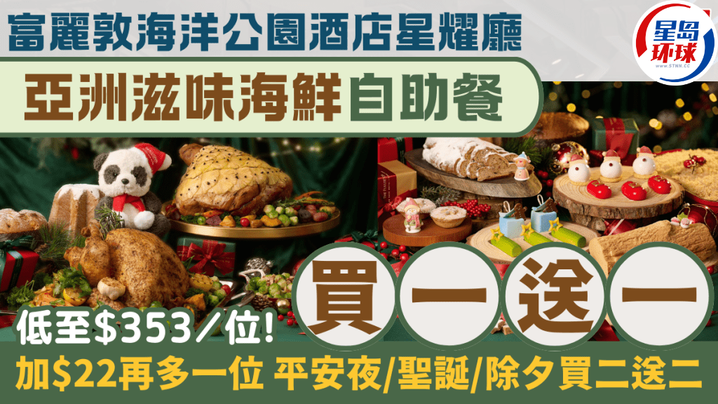 【香港富丽敦海洋公园酒店星耀厅自助餐买一送一 & 买二送二】>>按此抢购<<
