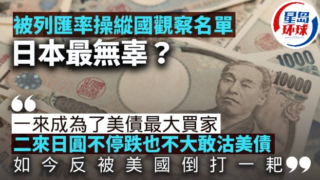 最无辜的是日本,因为它已听晒美国话,一来在中国减持美债的时刻,它替代了中国,成为了美债的最大买家;二来日圆不停的在跌,它也不大敢沽出手上持有的美债,以捍卫币值,如今反而被美国倒打一耙,说穿了,不过是美国警告它,要它不要沽出美债而已。