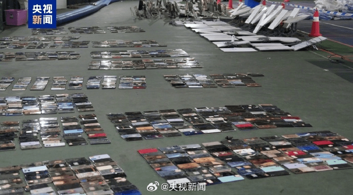 ▲缅甸当阳地区首次,1079名实施跨境电信网络诈骗疑犯被抓获,搜出相关的诈骗工具。 央视截图