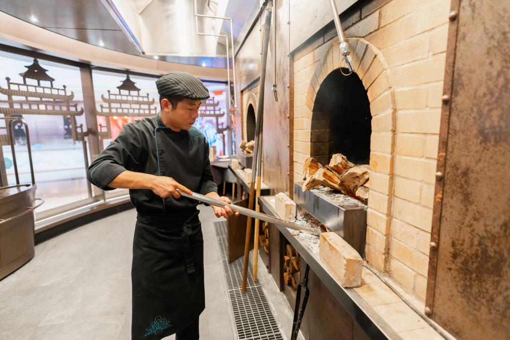 ▲以北京烤鸭为主打的餐厅“花悦庭”,客人可于开放式厨房观赏烤鸭过程。