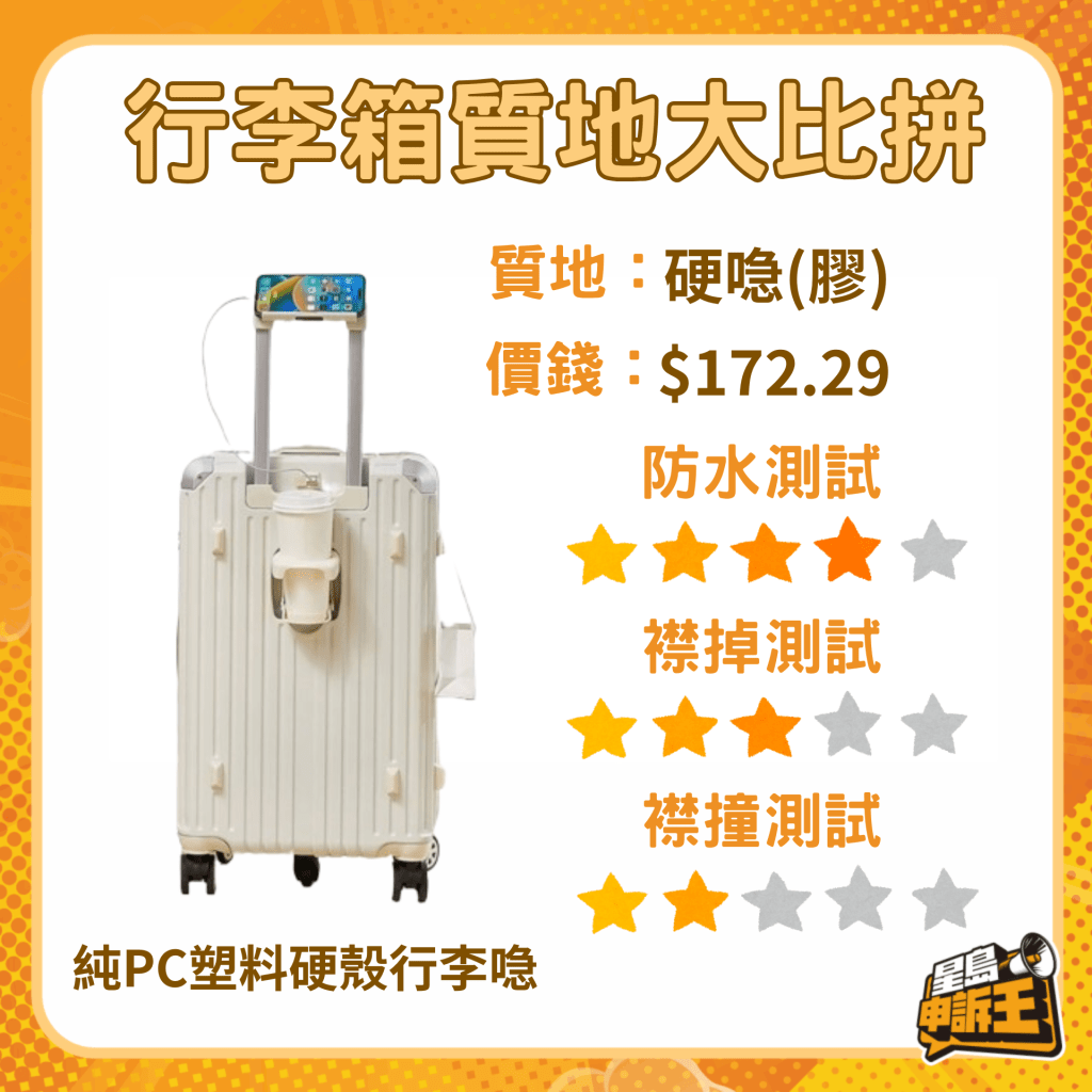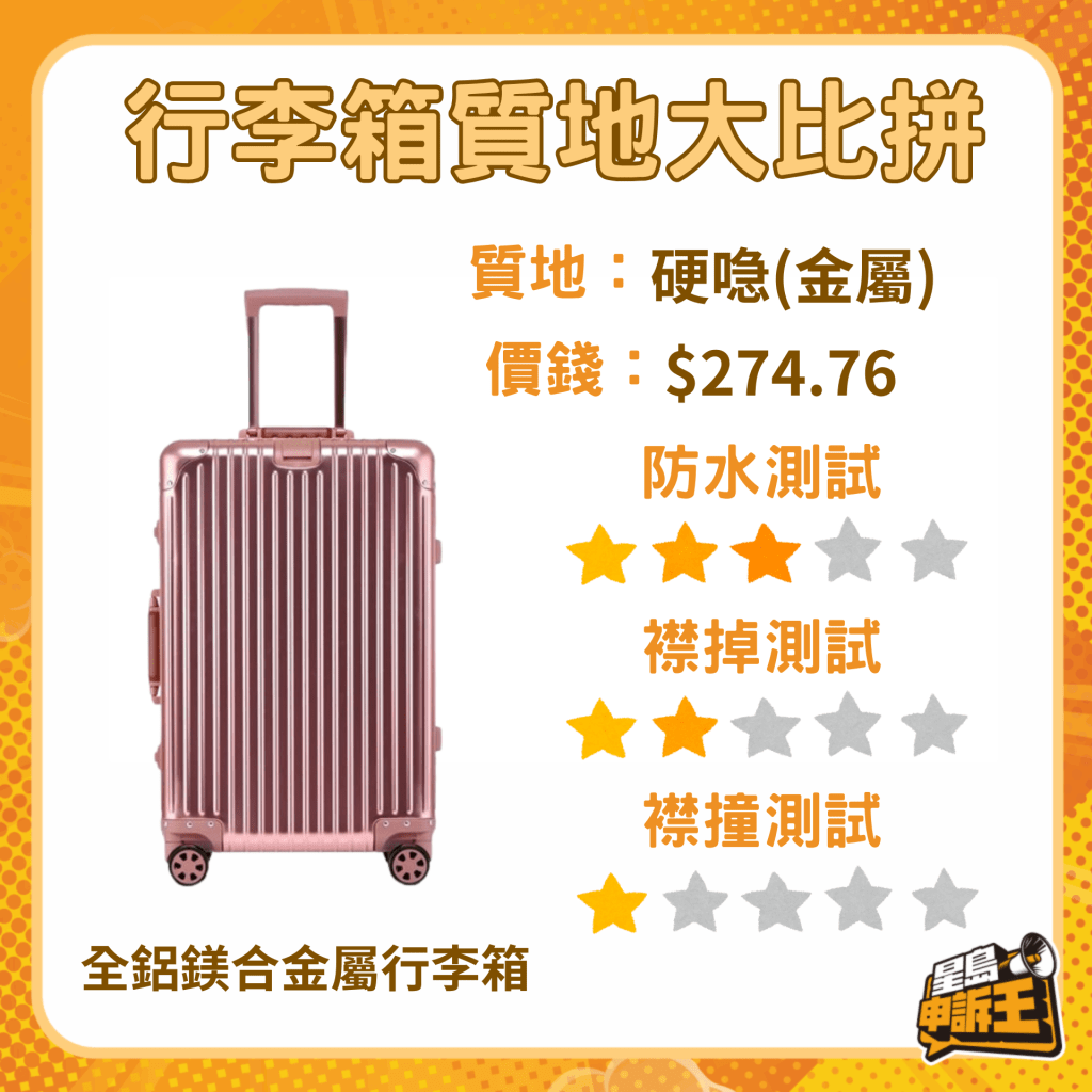 港人一向热爱旅行,不少人家中至少有一个行李箱。市面上不乏价格高且标榜实用的行李箱,但亦有不少人倾向购买平价行李箱。《星岛申诉王》今次网购了3个不同质地,且价钱在300元或以下的20吋手提喼,物料包括布、胶及金属箱,实测一它们的“襟撞”、“襟掉”及“防水”程度。
