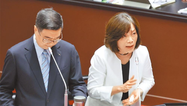 ▲图为“劳动部长”何佩珊(右),与“行政院长”卓荣泰(左)在“立院”备询画面,今卓已批准何辞呈。(资料照)