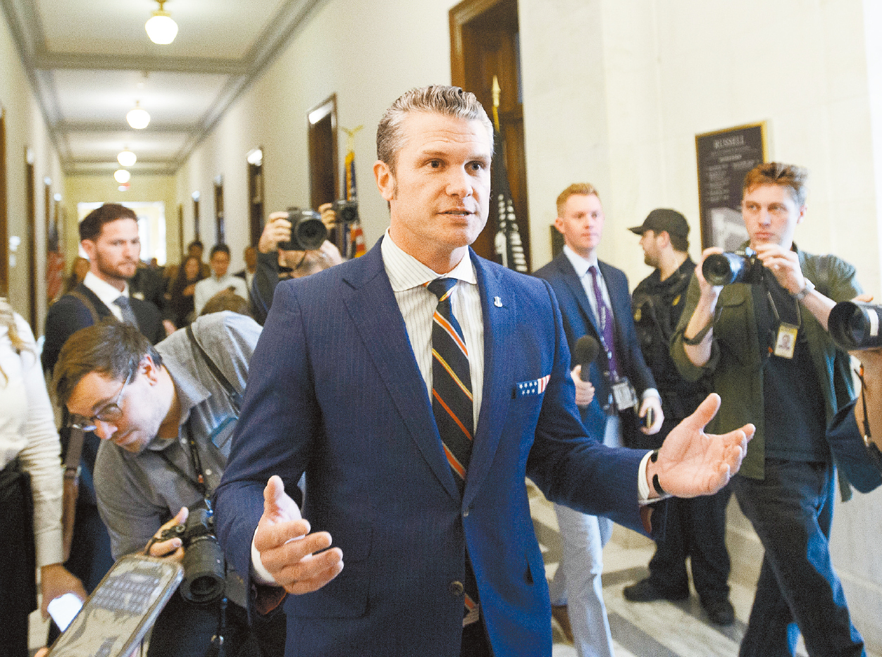 ▲国防部长提名人赫格塞斯21日与多名共和党参议员会面,力保提名。 美联社