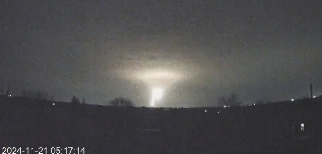 乌克兰空军方周四初步声明,这枚导弹是洲际弹道导弹(ICBM),乌克兰媒体指称是俄制RS-2“边界”(Rubezh)导弹。俄国总统普丁(Vladimir Putin)周四证实,当天上午俄方对乌克兰发射一枚新开发的高超音速导弹“榛果树”(Oreshnik,Hnazel Tree),攻击乌克兰第聂伯罗市(Dnipro)一处军事设施。普丁称这是中长程弹道导弹(IRBM),美国、北约也认同这项描述。