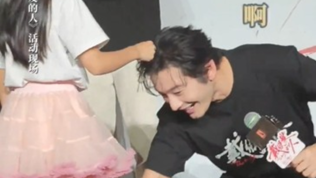 黄晓明日前为新电影《戴假发的人》宣传,台下小妹妹好奇询问:“为什么你在电影里没有头发,而现在就有头发了,可以让我摸一下吗?”黄晓明也大方同意,让小女孩上台,蹲下开完笑表示:“你拔两根回去留作纪念”,没想到,小女孩完全没在客气,直接用力扯黄晓明头发,让他痛得大叫出声,还差点被拉跌倒,最后他亲切和小女孩说:“宝贝,没事挺好的。”