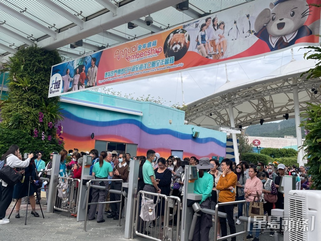 园方上午10时开门,开门前已有不少游客在场等候,部分游客穿戴大熊猫的头饰或服饰,亦有人带熊猫公仔入场。游客入园后,工作人员向他们派发红鸡蛋,乐团亦在场奏乐,气氛热闹。有市民指很开心香港多了一对熊猫宝宝,之后能观赏熊猫宝宝时会再入园。
