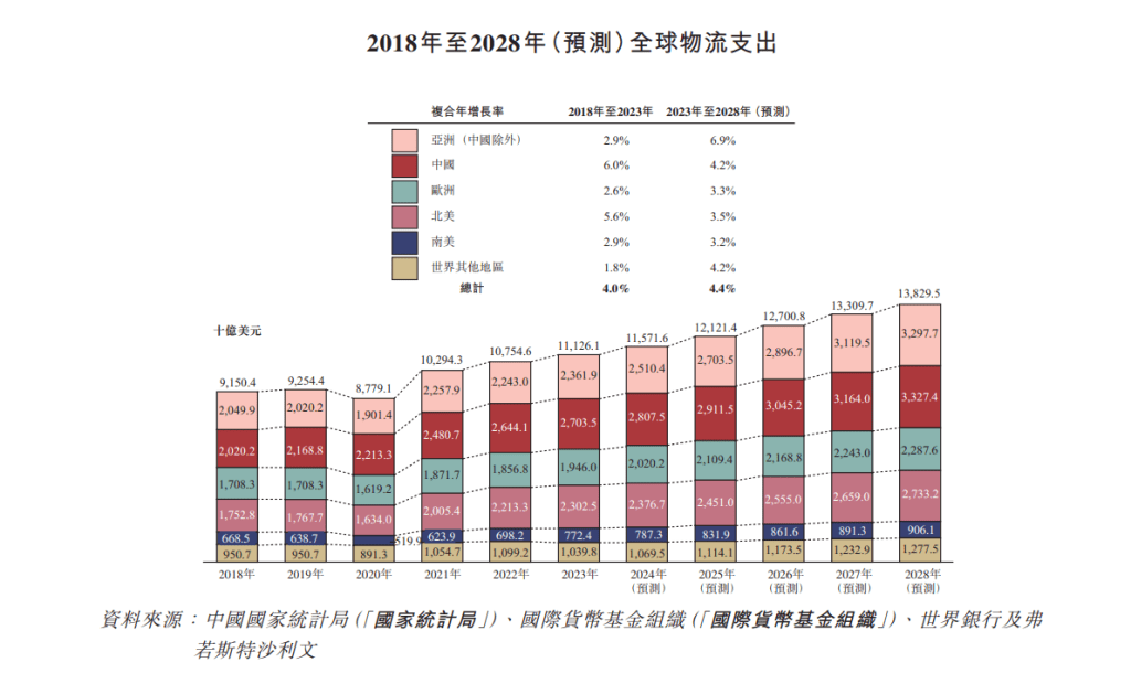 若以招股价范围中位数34.3元计,扣除上市相关开支后,集资淨额约56.61亿元,当中45%将用于加强国际及跨境物流能力;35%用于提升及优化中国物流网络及服务;10%将用于研发先进技术及数字化解决方案,升级供应链和物流服务及实施ESG相关举措;馀下10%将用作营运资金及一般企业用途。