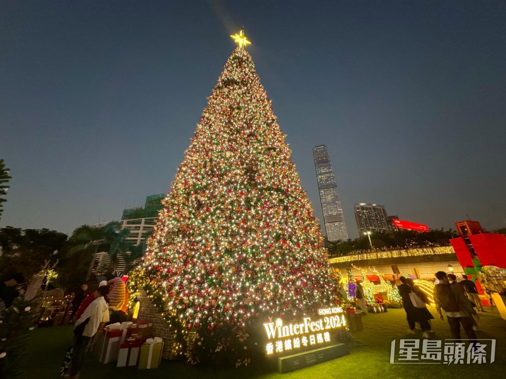 旅发局“香港缤纷冬日巡礼”于11月22日起至2025年1月1日举行,多个精彩节目陆续登场,当中西九文化区海滨于即日起华丽化身成加大版圣诞小镇,占地逾万呎,场中高耸入云的巨型圣诞树足足有20米高,今年新增360度3D立体投影效果营造节日气氛,每晚6时起每隔半小时上演,璀璨夺目。