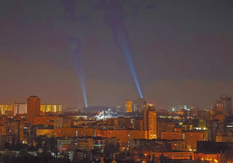 ▲乌军上周三使用探射灯在城市上空搜寻无人机。路透社
