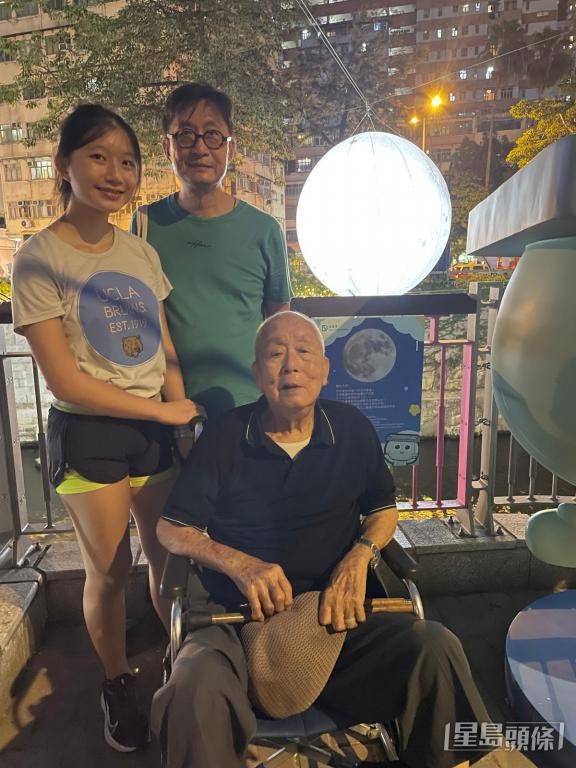 ▲成长于东头邨的郑炳鸿,前年与父亲及女儿回到启德河过中秋。