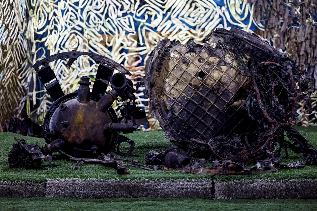 ▲乌克兰24日首度公开俄罗斯新型中程弹道导弹“榛果树”(Oreshnik)残骸。(路透社)