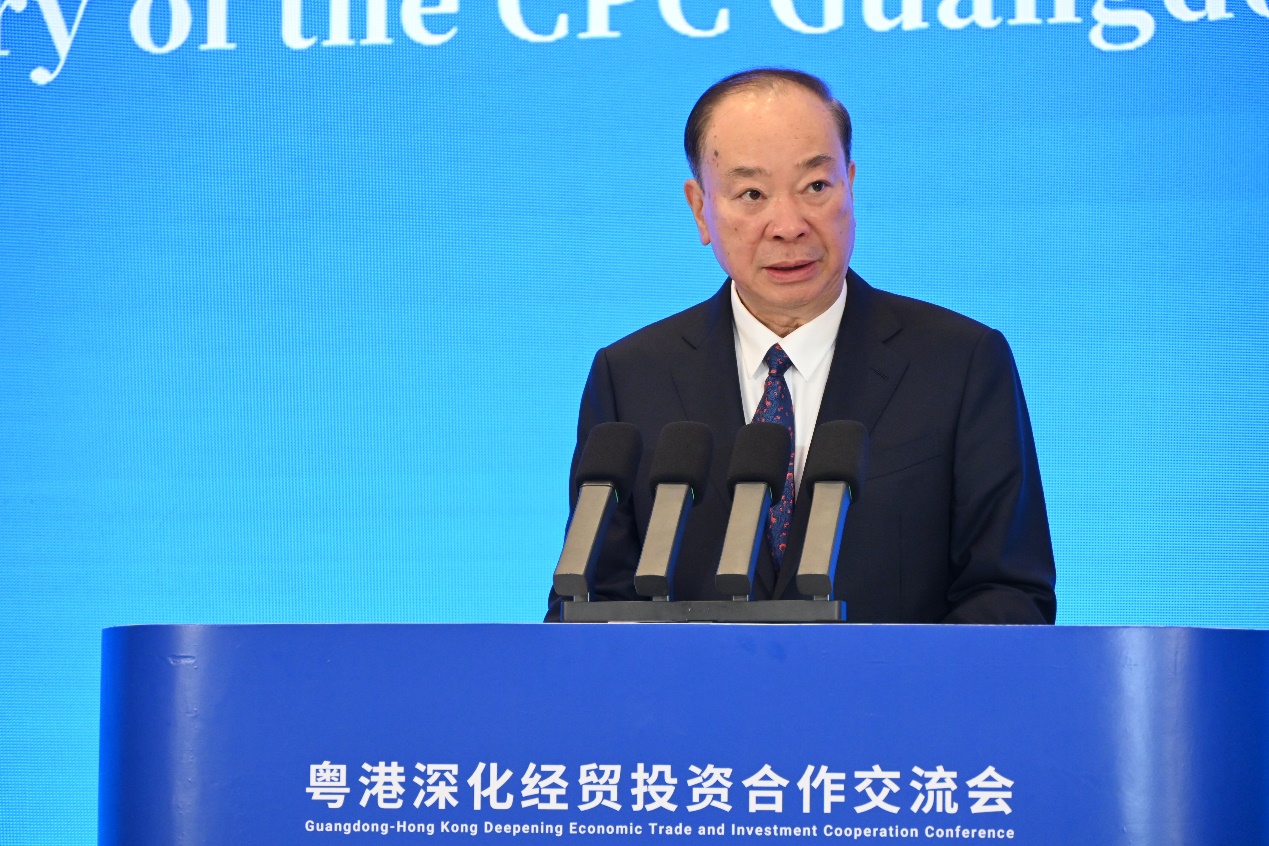 代表团25日下午出席由广东省人民政府和特区政府联合主办的粤港深化经贸投资合作交流会,就提升经贸投资合作和推动大湾区高质量发展进行交流。广东省委书记黄坤明、李家超和中央人民政府驻香港特别行政区联络办公室主任郑雁雄在交流会上致辞。