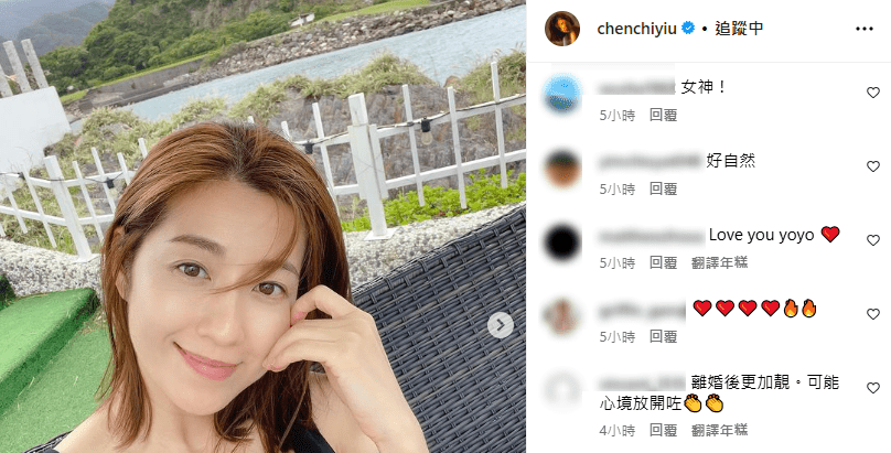 陈自瑶回春样,获袁伟豪在帖上心心眼留言:“Yo 姐春风满面”,而网民也留言大赞陈自瑶太美,“好好放松 多多po照片,Yoyo素颜无敌太美啦”、“Yoyo姐姐好靓好可爱”、“Enjoy ur me time sweetie”、“少女的美”、“Yoyo好美,好可爱,索到呢,加油”,另有网民表示,“离婚后更加靓。可能心境放开咗”,看来这位网民似乎有所误会,以为陈自瑶与王浩信已经官宣离婚。