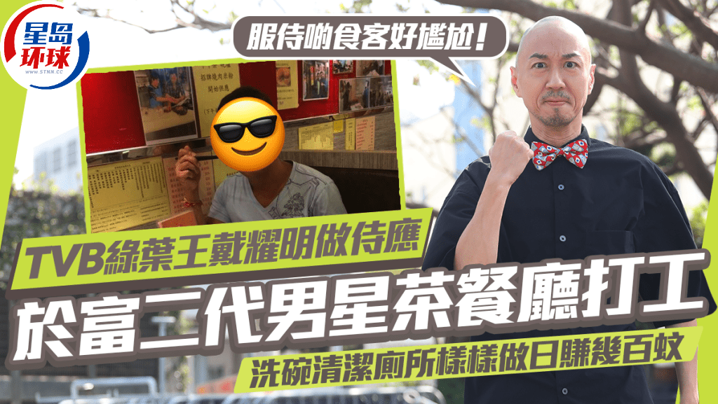 现年52岁的TVB绿叶王戴耀明近日被指为“饮食界富二代”张本立打工,于张本立位于黄大仙的茶餐厅做侍应,更被传媒拍到落单、抹枱、倒垃圾及洗碗的工作情况。戴耀明直认因演员工作不稳定,决定于茶餐厅打工学多样手艺,更想学习冲咖啡和奶茶,但强调并非转行。