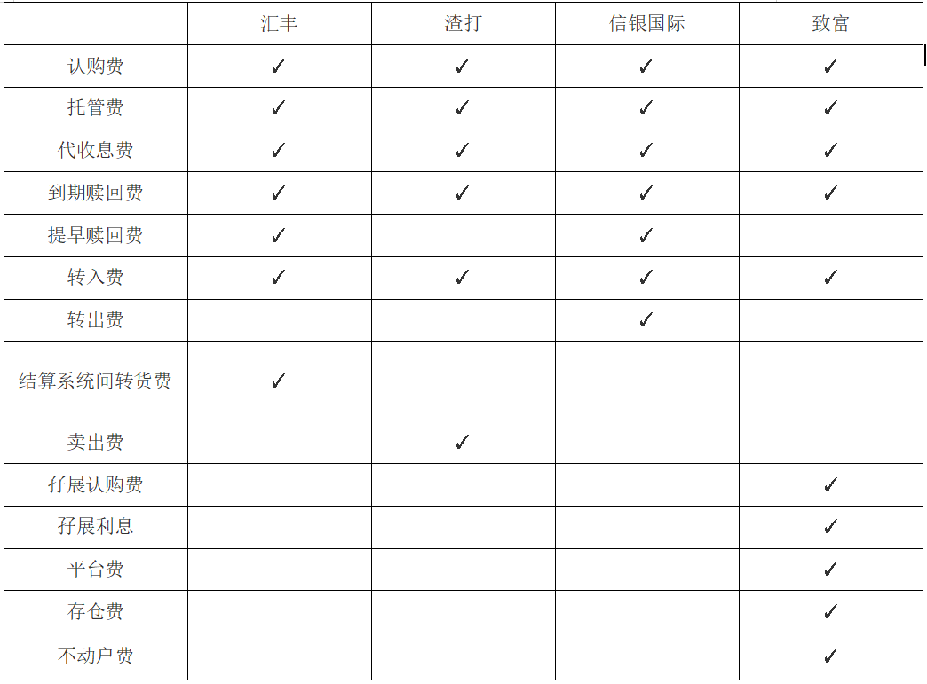 各银行券商豁免收费项目: