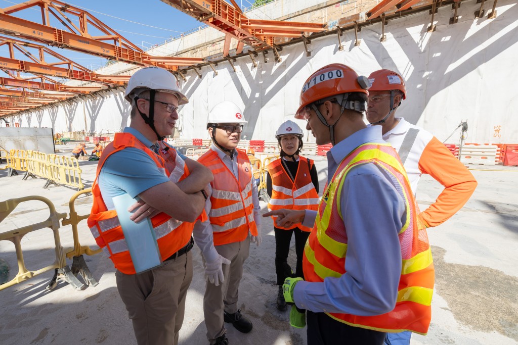 ▲小组委员会主席张欣宇(左二)与港铁及政府代表就车站施工的挑战交换意见。