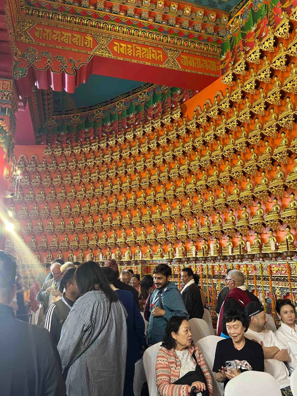 照片可见,素颜的邱淑贞穿上白恤衫,把太阳眼镜挂上头顶,皮肤白皙又紧緻、轮廓分明,身旁的沈嘉伟则身穿白色Tee,现身在尼泊尔千佛寺内,他俩静心坐在靠近牆边一旁,而寺庙内放满无数小佛祖,信徒塞爆寺庙。有网民成功与邱淑贞合照,戴上太阳眼镜的邱淑贞笑容满面,非常之友善。而该网民又透露是次活动是蓝毗尼千佛寺开光的第一天,下午又一起去了释加牟尼佛菩提树,摩耶夫人寺等,她更爆料指邱淑贞的女儿也在,是一名很漂亮的女孩!