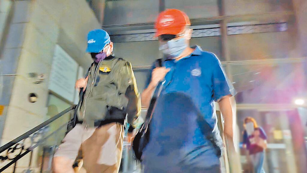 ▲台盐前董事长陈启昱(右)10月24日获无保请回时,头戴红帽和口罩步出台南地院。(中时资料照片)