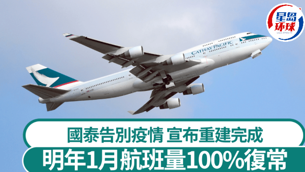 国泰(0293)宣布重建工作完成,并更新复常时间表,将从2025年1月起,集团旗下航空公司的航班数量将恢复至疫情前100%水平。