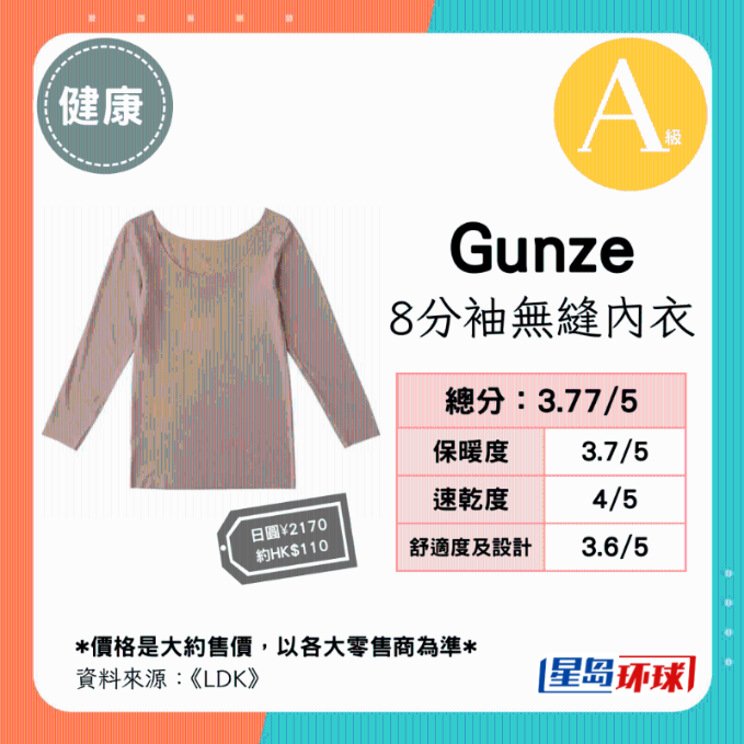 日本生活杂志《LDK》公布2024年的保暖内衣测评结果,当中的3大评分标准包括保暖度、吸水速干性能及舒适度与设计: