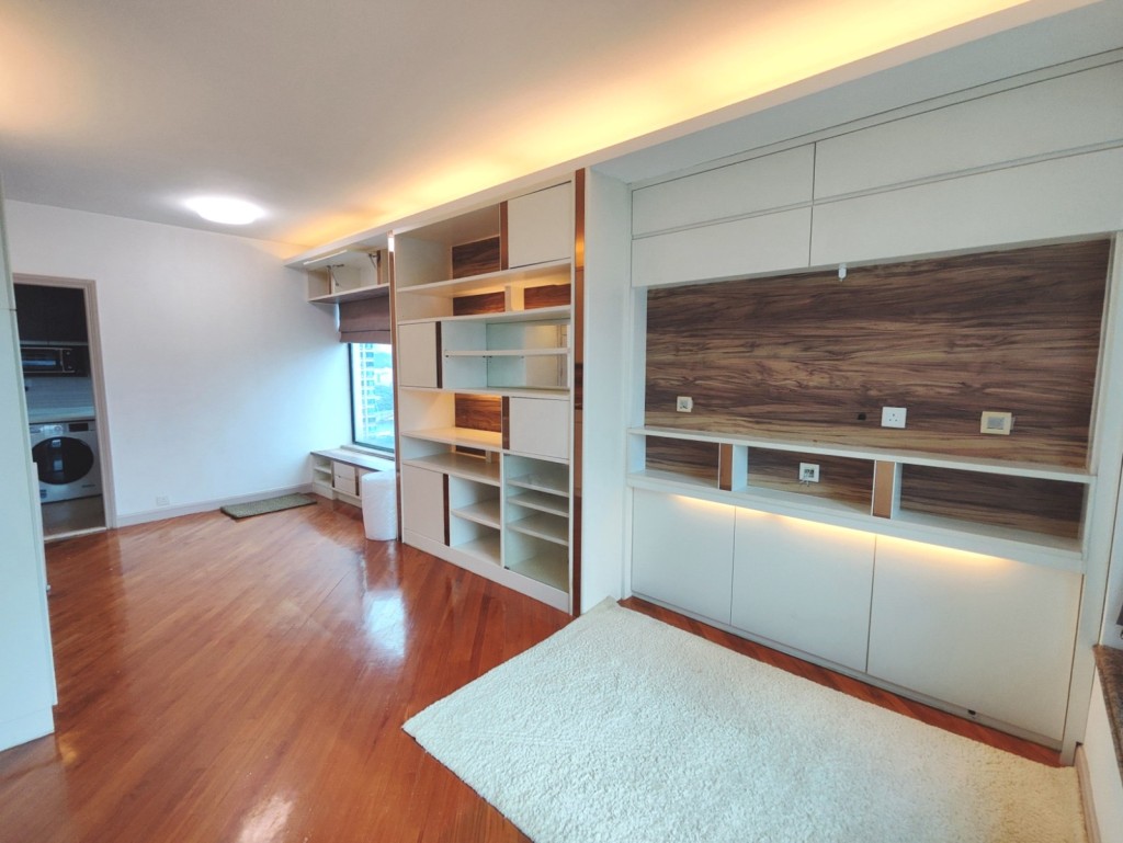 单位间隔为2房,主人房间隔方正实用,靠窗放置组合床架,室内通透明亮。另外一房为书房,空间偌大,靠墙安装书桌及层架。浴室保养得宜,配备浴缸,地柜及大镜。独立厨房提供新净厨柜、雪柜、洗衣机等基本设备。