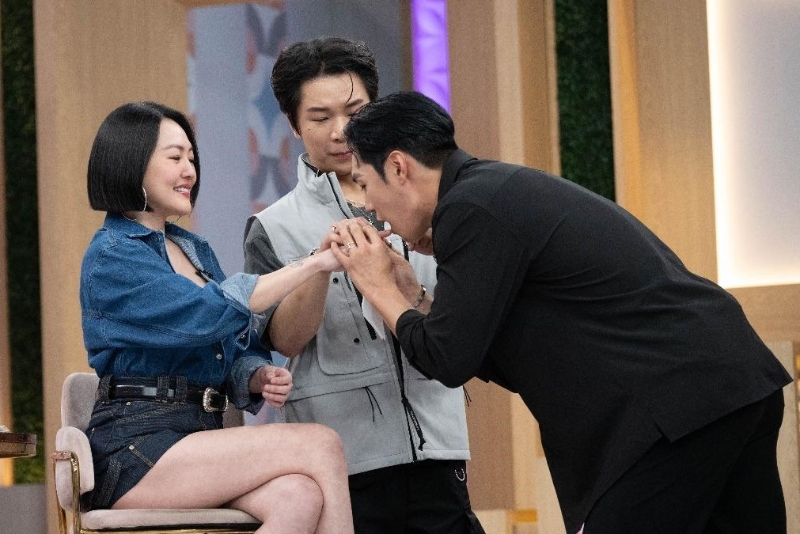 ▲金镇友抓着小S的手让她亲身感受“手感”时,竟意外让小S的手指头见血,金镇友连忙道歉安慰,还作状把小S的手指头往嘴里含,意识大胆。