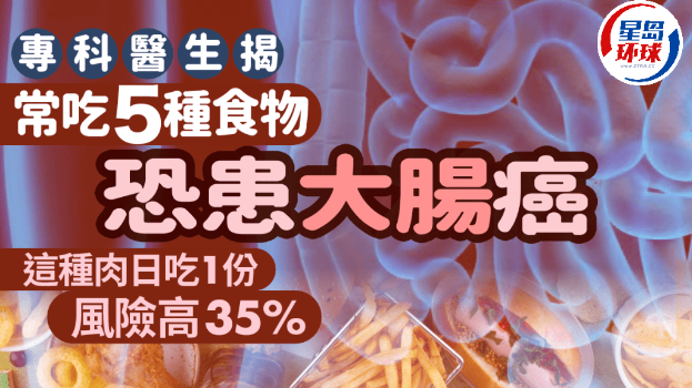 【大肠癌成因/癌症/致癌食物】大肠癌为全球第2大致命癌症,近年个案增多!有医生指出,常吃5类容易伤及胃肠道系统的食物,恐引发大肠癌。若每日吃1种肉,风险高达35%!