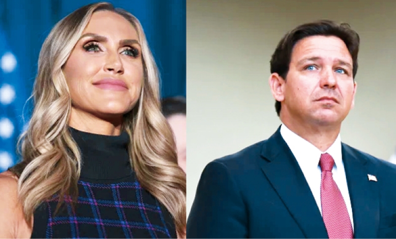 ▲由于特朗普希望让儿媳娜拉(左)继任参院空缺,令佛州州长德桑蒂斯陷入政治两难。合拼图片