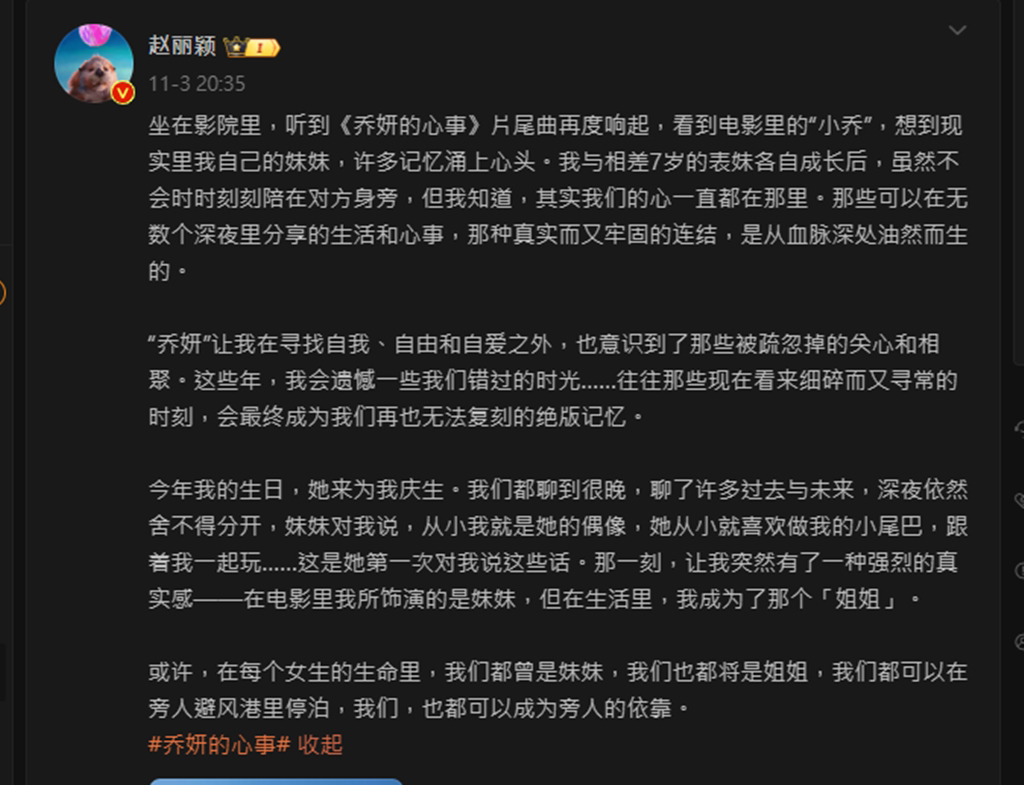 ▲赵丽颖最新发文停在本月初。 (图/翻摄自赵丽颖微博)
