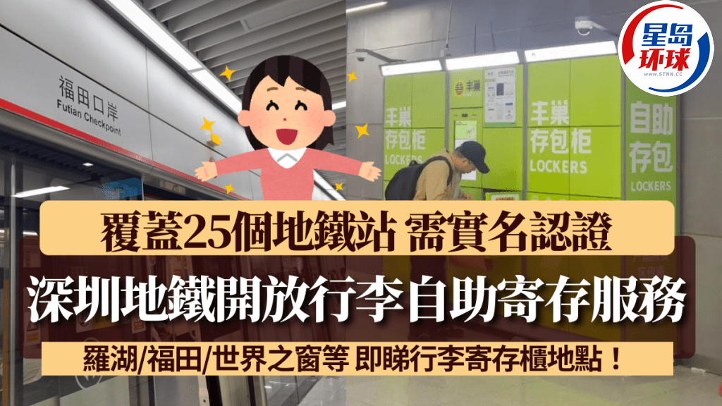 港人北上热潮持续,不少市民都会趁假期到深圳血拼购物,但带着行李出行,难免有所不便。深圳地铁由即日起开放行李自助寄存服务,在25个地铁站设置行李寄存柜,包括港人常去的罗湖站、福田站、世界之窗站等,使用前需实名认证,即看下文了解详情!