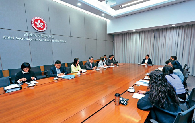 ▲政务司司长陈国基主持跨部门会议,统筹和指示各部门作好准备。
