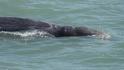 ▲疑似鲸鱼在离岸约一至两米处搁浅,长约4至5米。