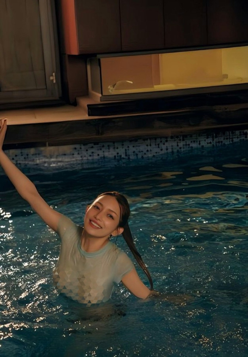 ▲其中一组照片能看到后藤真希穿着超薄T恤、无罩下水,湿身后胸部激凸。