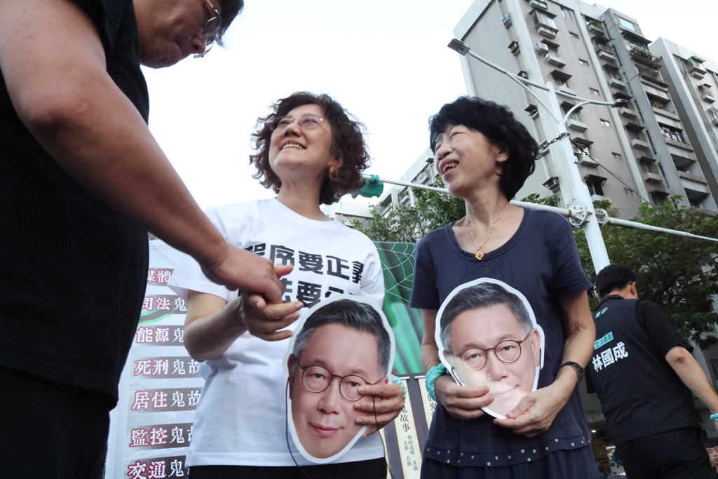 ▲图为柯文哲妻子陈佩琪(右一)、柯文哲的妹妹柯美兰(中)。