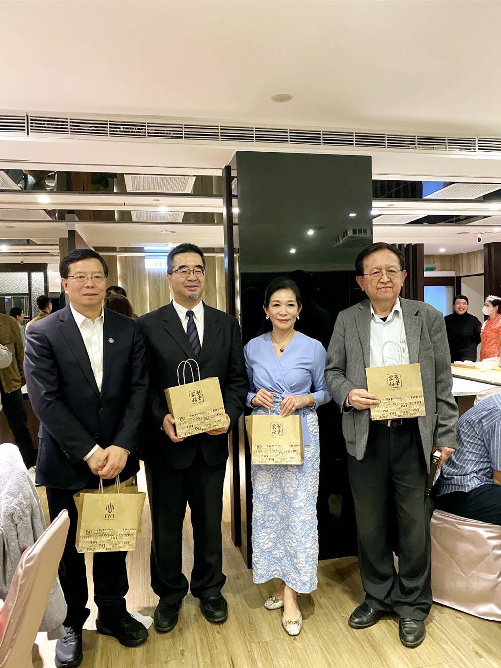 ▲老板娘黄碧娇(右二)除了准备现捞海鲜小卷、清蒸龙鳕鱼等大陆内地少见的菜色外,还准备了世界知名的特色钢珠笔当伴手礼送给远道而来的陆生团。 黄碧娇提供