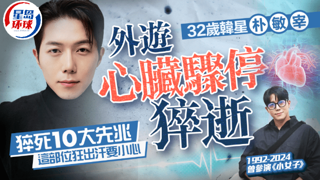 韩国男星朴敏宰(박민재)曾参演《小女子》等人气韩剧,前途原本无可限量,但他上周五(11月29日)在中国旅行期间,因心脏骤停猝死,终年32岁。猝死看似猝不及防,但有医生表示,身体若发生10大警号,有机会是猝死先兆!