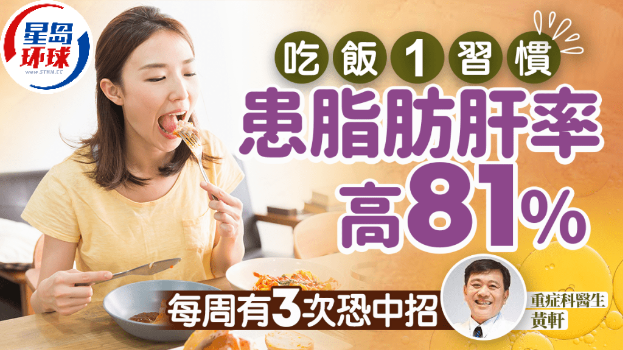 · 每周有两次以上快速进食(每餐时间少于5分钟),比起用餐时间15分钟或以上的人士,患脂肪肝的风险提高81%。