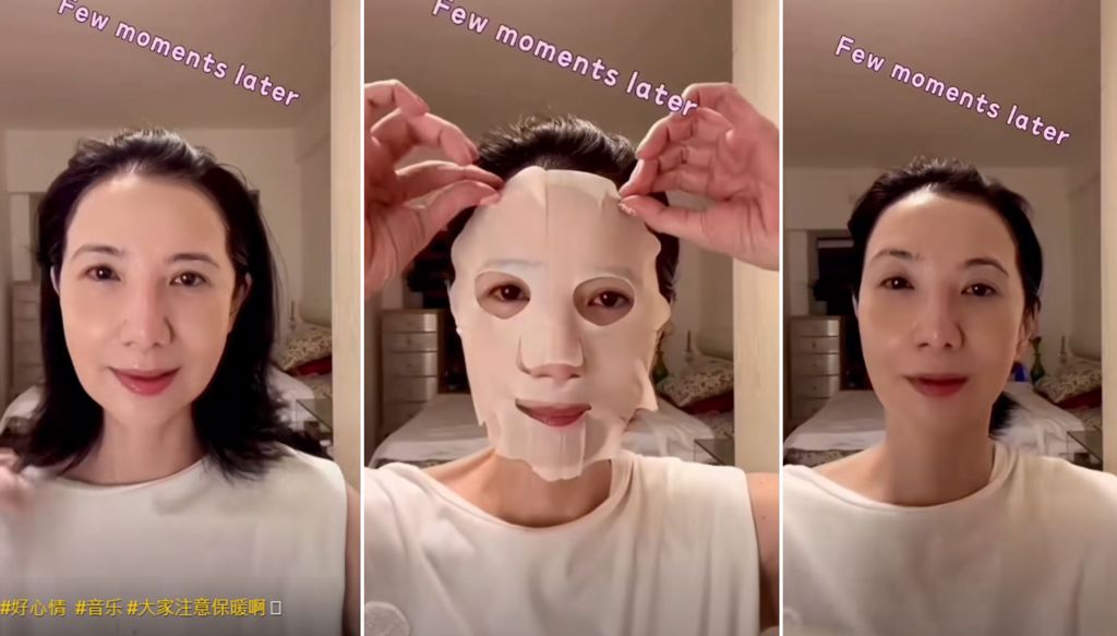 ▲关秀媚近日在抖音上分享自己居家护肤的影片。(图/翻摄自抖音)
