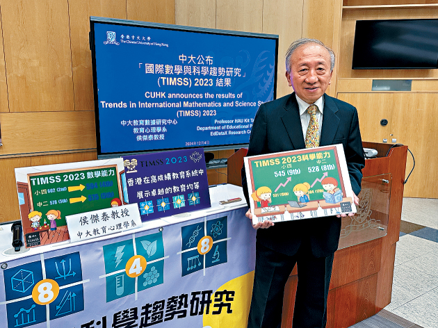 中大教育心理学系教授兼香港TIMSS 2023项目主理人侯杰泰昨公布研究结果,数学表现方面,香港小四生取得594分,中二生取得575分,分数虽分别较上届微跌8分与3分,但仍然在参与研究的教育体系中分别排行第4位和第5位,其中38%小四生及32%中二生的分数达数学科国际最高基准,高于该年级的国际中位数。