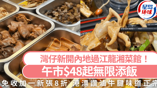湾仔新开内地过江龙湘菜馆!午市$48起无限添饭免收加一新张8折