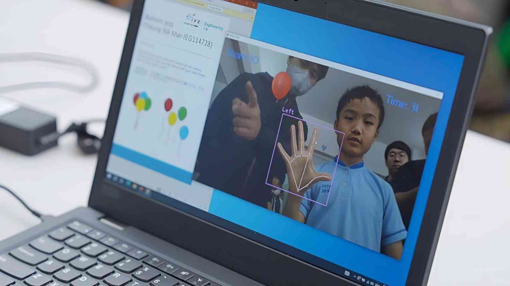 为此,他研发了一个融入AI技术的游戏 —“AI动感气球”,游戏的AI镜头能辨认玩家的手部,并自动捕捉手指动作,当侦测到手指“触碰”到荧幕上的气球时,气球便会被戳破,限时内戳破愈多气球便得分愈多,气球移动的速度会随着分数增加愈来愈快,增加难度。