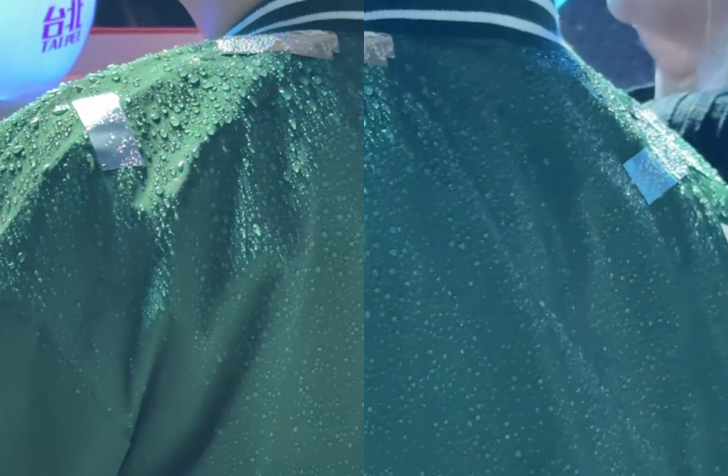 影片中也可见,当水花喷出后歌迷纷纷惊觉不对劲,急忙低下头以免被波及,没想到舞台设计还有洒水的惊喜,更忍不住惊喊着,“它喷水了”、“湿掉了”、“怎么会喷水啦”。同时原PO也附上被水喷湿的自拍照,无奈表示,“我不是在室内看演唱会吗?超狼狈超湿”。