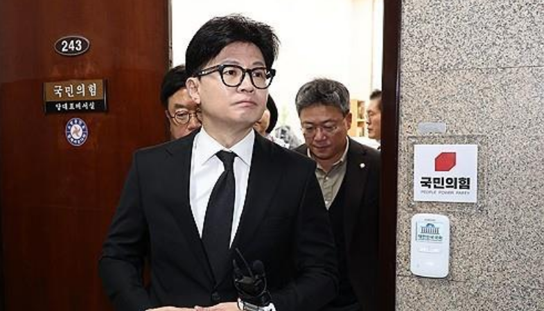 ▲12月7日,韩国执政党国民力量党党首韩东勋在国会向记者发表讲话。 韩媒