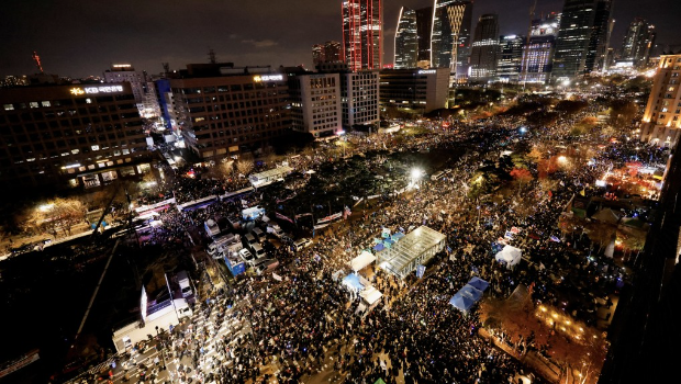 ▲赞成弹劾尹锡悦的民众挤满国会外的大道。 路透社
