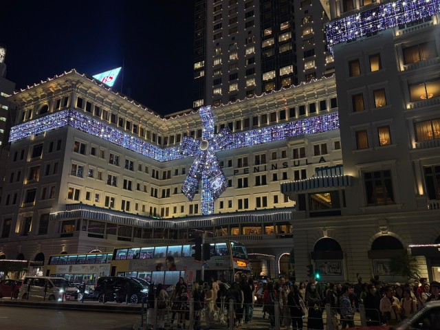 南洋中心外墙挂上“Merry X'mas”字眼,为大家送上礼物及欢笑;永安广场以色彩缤纷圣诞老人为主题,圣诞老人驾住鹿车驶过香港地标;富豪九龙酒店换上白色圣诞装饰。海景嘉福洲际酒店以火树银花为主题,採用红色与银色的节日装饰搭配闪烁灯光;帝苑酒店挂上38颗巨型雪花,并带有闪烁动态效果。尖东圣诞嘉年华将于12月14、15日举行,现场设有摊位游戏、有面部彩绘、歌手驻唱及驻场DJ营造气氛,公众人士免费入场。