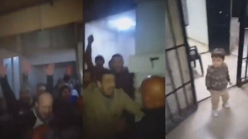 据悉地下牢房缺乏通风,一些人“几乎窒息而死”。反抗军开枪破坏牢房大门与门锁后,大量囚犯迅速涌向走廊,当中还有懵懂的小男孩和女性。他们一脸迷惘,旁边有人急忙说道:“巴沙尔倒台了。不要害怕。”有人听罢兴奋地大笑起来。