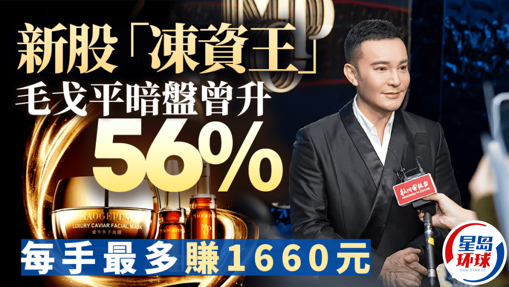 根据早前券商数据显示,毛戈平孖展额达1,560亿元,已超越今年上市的华润饮料(2460)冻资1,323.9亿元的纪录,成为今年新股“冻资王”,若以公开发售集资2.1亿元计,即超额认购逾741倍,超越近日上市的九源基因(2566),成为今年超购倍数排名第四大新股。