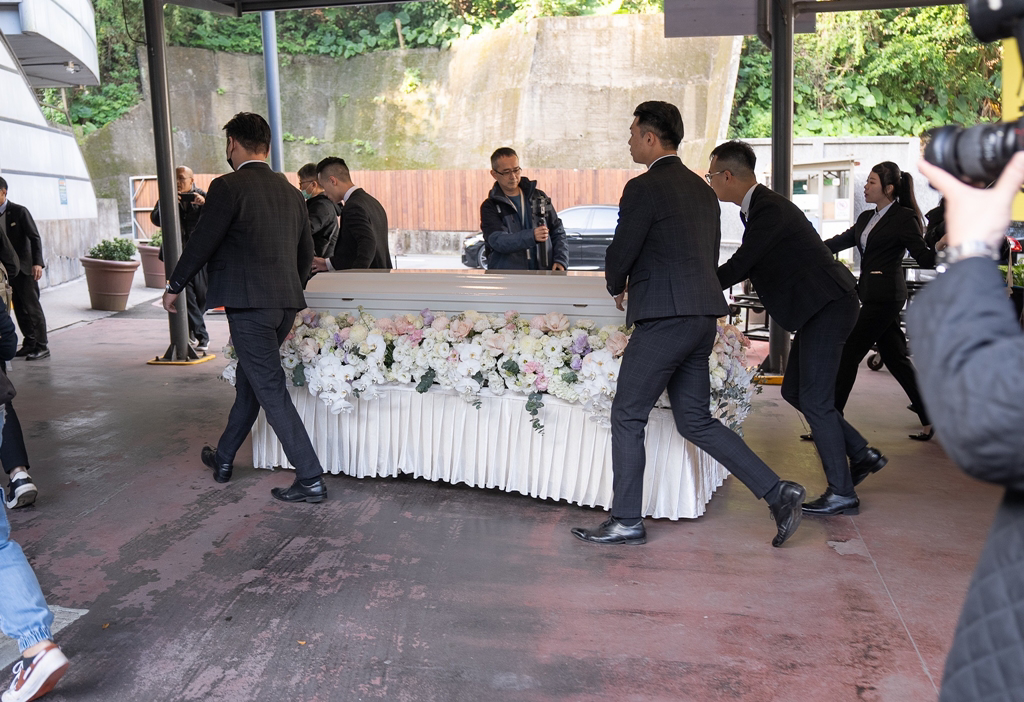 ▲琼瑶家祭仪式完成,家属稍早推棺木至火葬场。